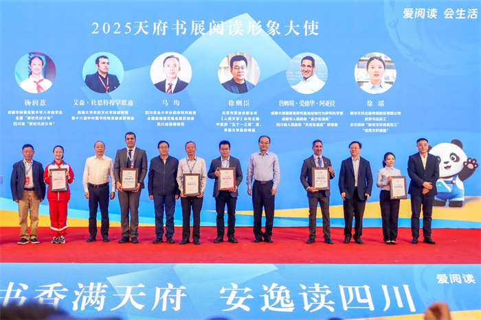 谢刚为2025天府书展阅读形象大使颁发聘书