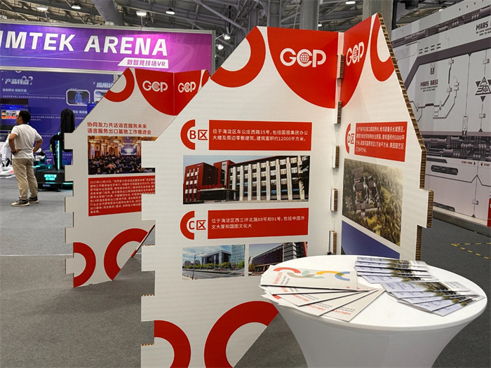 国际传播科技文化园在重点展区展示国传园国际语言出口服务基地,北京市级文化产业园区及“一园五址”。一同参展的有博邦芳舟、译国译民、国传园B区国际书店三家优质入驻企业。
