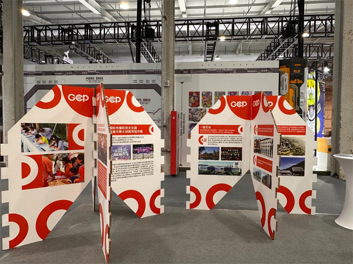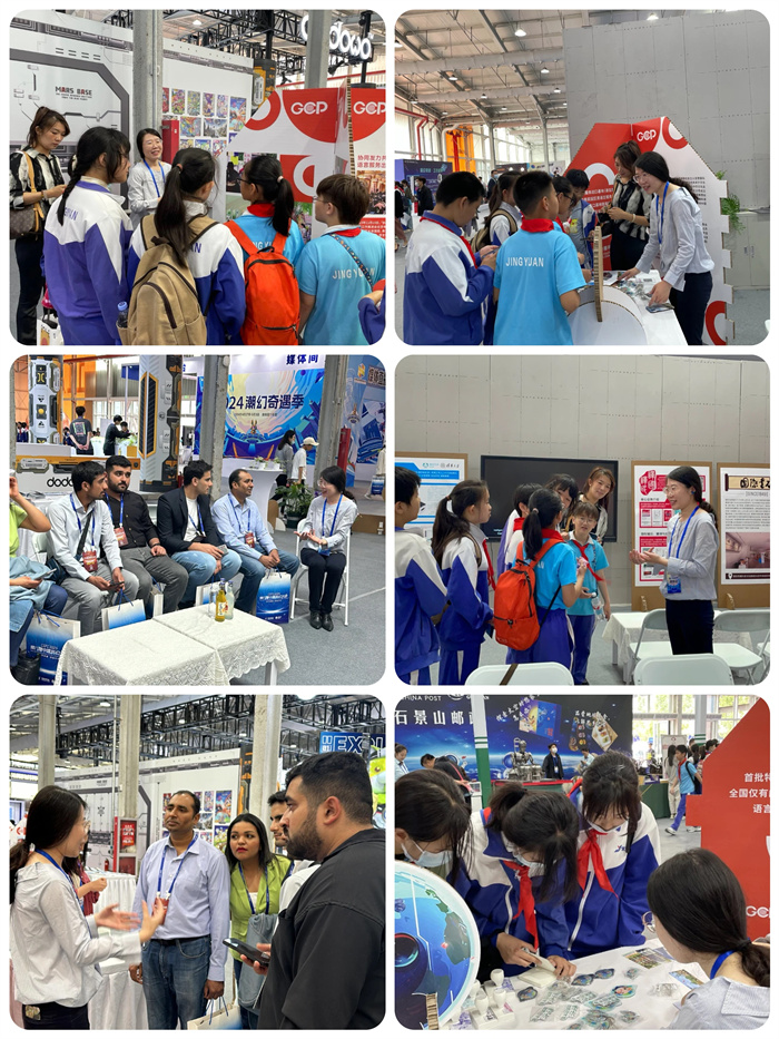 参展期间,国传园展区吸引了众多观众及外国友人前来参与互动,国传园以科幻,国际传播,文化交流的丰富多彩的交流活动贯穿全场,将推出”寻梦AI影像展“、”中轴线上的琉光璃彩“、“生成未来AIGC达人对话会”等一系列活动。