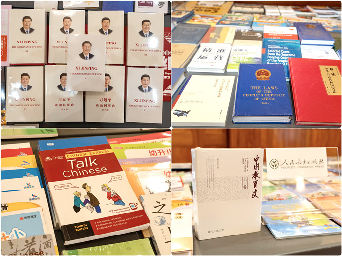 图书展区以《习近平著作选读》第一卷、第二卷,《习近平谈治国理政》第一卷至第五卷中、英文版等中国主题出版物为重点展示内容,同时精选展出《中华经典诗词分级诵读本》《中华法制文明史》《这就是书法》《教育文化研究丛书》《AI群星闪耀时》《漫画中药故事(中医药文化传承系列)》《大中华寻宝系列》等内容涵盖中国政治、经济、文化、教育等领域图书1000余种。