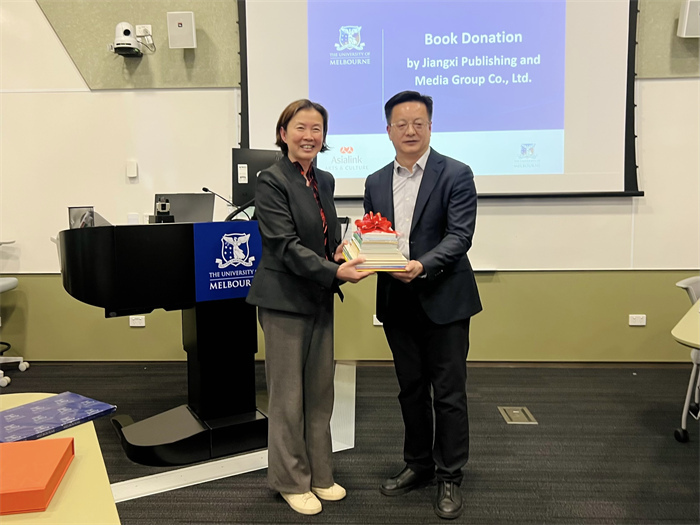 Asialink邀请Thames & Hudson出版社、墨尔本大学出版社相关负责人,与团组围绕中澳出版趋势、数字资源与人文交流等开展座谈。Asialink总监Julia Gong介绍到,其是墨尔本大学设立的一个非学术部门,致力于加强澳大利亚与亚洲国家在商业、教育、文化和社区领域的联系,作为澳大利亚最具影响力的亚洲联络机构之一,其在推动澳亚跨领域合作方面具有丰富经验与资源。Thames & Hudson出版社亚太区总经理Daniel Watts分享了数字时代人工智能对艺术图书出版的影响与机遇。墨尔本大学出版社CEO Foong Ling Kong介绍了其社主要业务,分享了小型出版社如何迎接AI时代挑战的思路。团组成员围绕数字化转型与探索、中国图书外译等作了分享交流。会议还就出版物国际传播网络拓展的方式方法展开探讨。会上,江西出版传媒集团向Asialink赠送了图书。