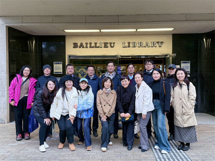 代表团还访问了墨尔本大学图书馆和维多利亚州立图书馆,了解两馆在中文资源收藏、数字化服务等方面情况。墨尔本大学图书馆作为澳大利亚中文馆藏最丰富的图书馆之一,其东亚文献收藏系统完整,涵盖古典文献、现当代学术著作、报刊及数字资源,为汉学研究和中国问题研究提供了重要支持。维多利亚州立图书馆作为澳大利亚最古老的公共图书馆,不仅建筑历史悠久,其特藏部也珍藏着大量与中国历史、文化相关的重要文献。团组成员围绕中文图书的国际采编、数字资源共享、特色馆藏开发等潜在合作方向与两馆进行了探讨。