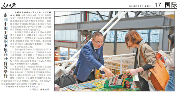 中国出版界代表团代表、国图集团内容编校中心副主任李楠表示,中国与南非两国出版界期待深化交流合作,创作和出版更多惠及两国人民的优秀图书作品,为中南务实合作提供更坚实的人文基础。